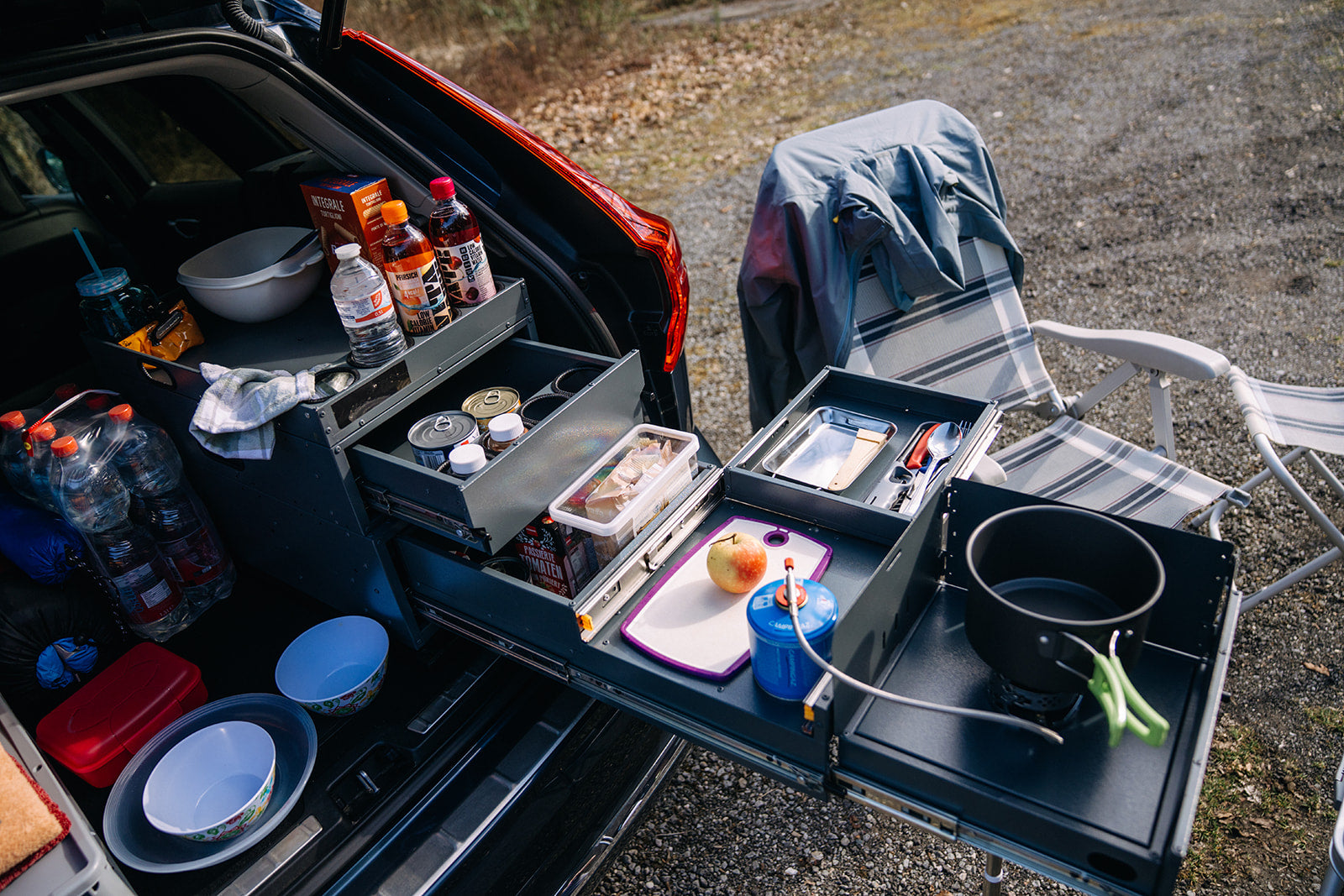 In realtà ci piace piccola e ordinata, semplice e pratica. Fedeli al motto: tenda da tetto, auto, go.... Tuttavia, abbiamo armeggiato con una soluzione di rimorchio flessibile e siamo rimasti scioccati a prima vista quando ce la siamo trovata davanti.